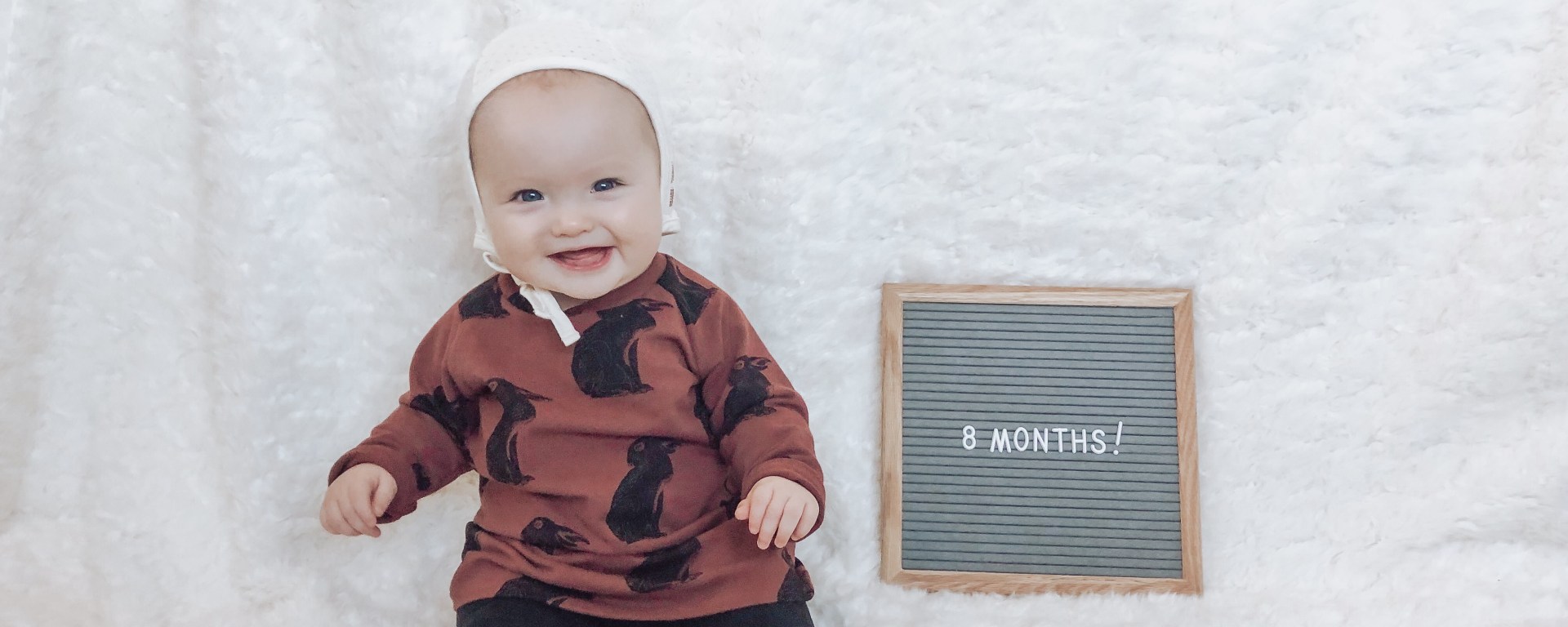 Mia is wearing 12 month clothing now, but it can vary between brands, as each brand fits differently. She is getting so big and sitting up by herself. Naturally she has a few tumbles from time to time. She looks as if she wants to crawl and move around, but that optimism is often followed by a face plant. It can be difficult with our hard wood flooring for our babies to enjoy getting on their knees or taking risks. But for now, she is becoming more playful each day and has become the sweetest, big baby in the world.